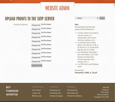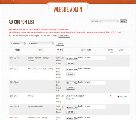 File manipulation - time-stamped PDF coupons for download, spreadsheet-based report generation, coupon artwork and coupon proof/final upload