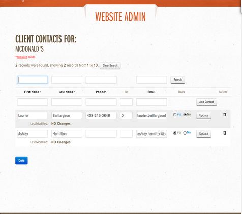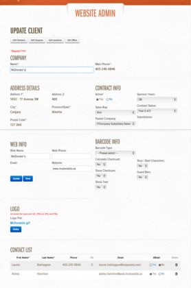 Email notifications - to Customer Rewards and Client/Advertiser contact registration, report forwarding to admin, artwork upload and coupon book proof page forwarding to Sales Reps and Admin